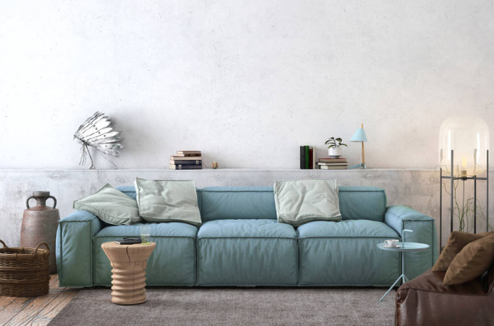 | Các lớp màu xanh dương, xanh lá tạo nên những âm hưởng của đại dương cho phòng khách hiện đại. Ảnh: LEKSTOCK 3D/Shutterstock. |