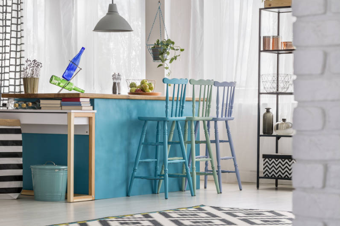 | Nhằm mang lại diện mạo vui tươi, đậm chất bãi biển, hãy thử pha trộn và kết hợp những chiếc ghế quầy bar mang màu sắc của biển với nhau. Ảnh: Photographee.eu/Shutterstock. |
