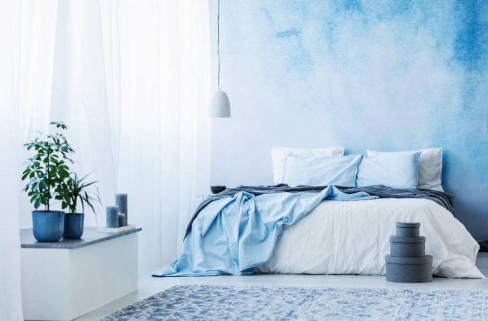 | Phòng ngủ đậm chất bãi biển trải dài trong các sắc thái của màu chàm và xanh nhạt. Ảnh: Photographyee.eu/Shutterstock. |