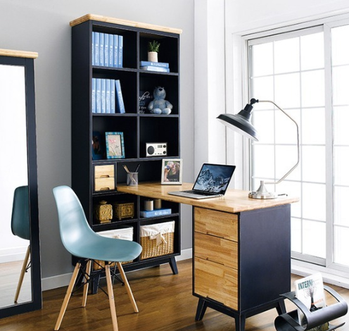 | Bộ bàn liền kệ sách NB-Blue có giá ưu đãi 35% trên Shop VnExpress, giảm còn 10,79 triệu đồng, là sự kết hợp giữa chiếc tủ sách trưng bày và mẫu bàn làm việc. Thiết kế nổi bật màu sơn xanh đen, kết hợp màu gỗ tươi sáng. Những ô kệ trang trí được kết nối chắc chắn, có khả năng chịu lực tốt, là nơi trưng bày các vật dụng trang trí, sách. Bàn được gắn liền cố định với tầng kệ, góp phần tiết kiệm không gian cho căn phòng. Ba ngăn kéo ẩn rộng rãi đáp ứng nhu cầu lưu trữ hồ sơ, giấy tờ. |