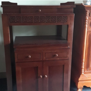 Sản phẩm thuộc mẫu bàn thờ chung cư. Với thiết kế nhỏ gọn, sang trọng thể hiện ở sự giản dị và tinh tế đủ cho một không gian thờ cúng. Phần mặt bàn thờ phía trên rộng rãi kiểu hình cách điệu rất cân xứng. Phía dưới là 2 chân liền với phần giá đỡ có thiết kế tầng bậc độc đáo. Với bàn thờ nhỏ này, gia chủ thoải mái xác định vị trí lắp đặt hợp phong thủy và tạo không gian thờ cúng thiêng liêng.